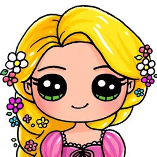 Learn HowToDraw cute princess Rapunzel from Disney Tangled easy step by step chibi drawing tutorial. Pretty Disney princess drawing with braided hair and f. How to Draw Cute Pictures is an app that teaches you how to draw a lot of characters step by step.